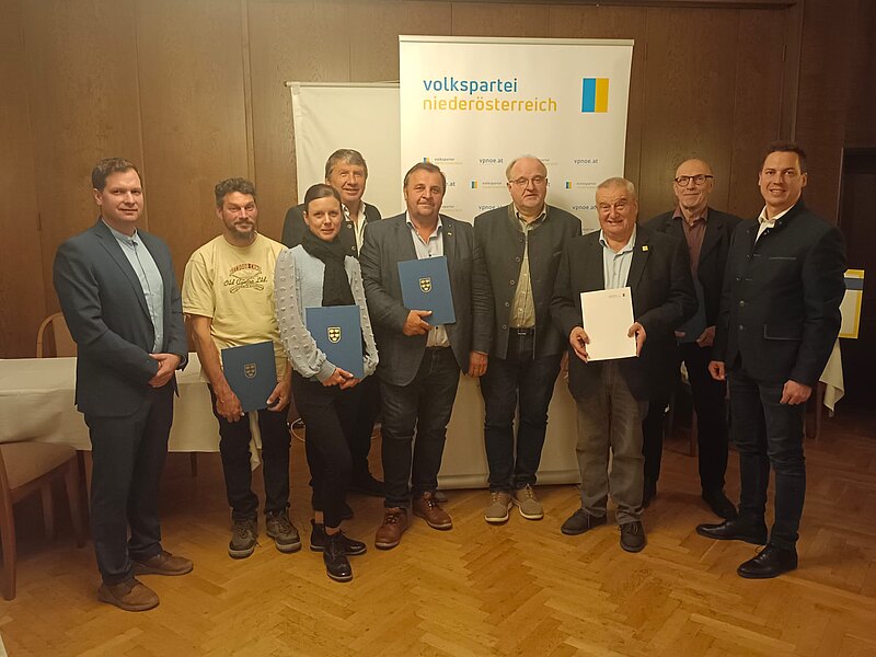 Die Volkspartei Königsbrunn am Wagram hat bei ihrem Gemeindeparteitag am 10. Oktober 2025 das Vorstandsteam neu gewählt. Gemeindeparteiobmann Josef Schwanzer konnte neben Bürgermeister Franz Stöger auch den Landtagsabgeordneten Herrn Bernhard Heinreichsberger sowie die Leiterin der ÖVP Bezirksgeschäftsstelle Tulln, Frau Paula Maringer, begrüßen. Er fasste in seinem Rückblick auf die vergangenen fünf Jahre die umgesetzten Projekte zusammen. Die bedeutendsten waren der Umbau des ehemaligen Postverteilerzentrums in eine Arztpraxis für die neue Gemeindeärztin Frau Dr. Sigrid Mayer und die Erweiterung des Kindergartens von drei auf sechs Gruppen. Bürgermeister Franz Stöger berichtete über Aktuelles von der Gemeinde und Landtagsabgeordneter Bernhard Heinreichsberger gab einen Einblick in die brisantesten Themen der Landespolitik.